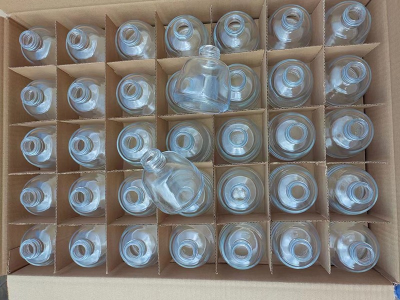 玻璃瓶廠從出瓶子的時候工人先看一下產品大致狀況,然后通過一段時間的退火,又車間主任在仔細檢查,大概狀況有以下幾種,提供我們了解一下。 玻璃瓶瓶身變形:因為成形模進去的瓶子還沒有無缺定形,這時分料滴溫度和感染溫度太高常常會使玻璃瓶子下塌變形,假定瓶身的上部太重也會如斯。偶然瓶的底部未冷卻到必定溫度會印上輸送帶的紋痕而使瓶底不平。